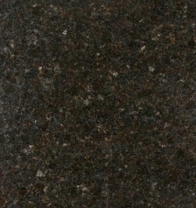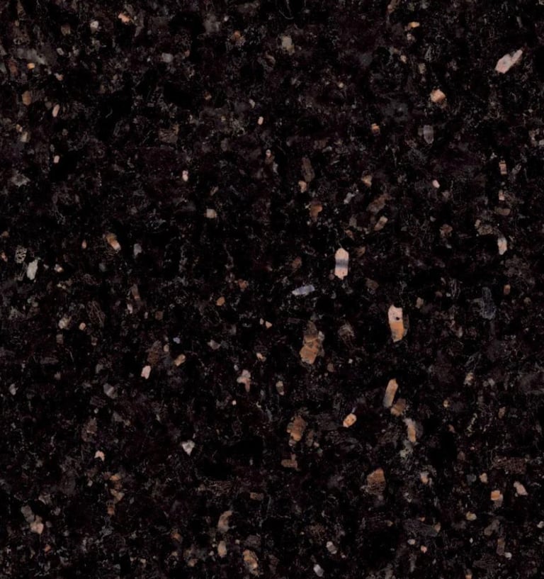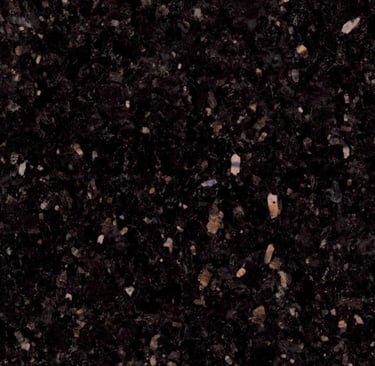 A striking granite from India featuring a deep black background speckled with golden or copper-colored flecks. Its high-polish finish and cosmic appearance make it a show-stopping choice for countertops and accent walls.