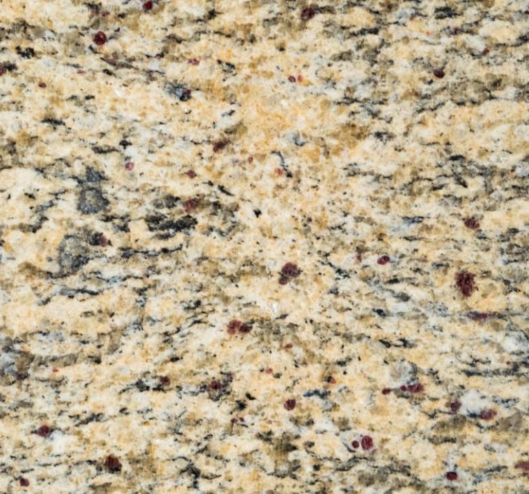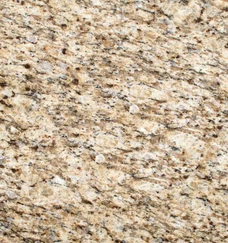 A classic Brazilian granite with a buttery yellow–cream background and swirling veins in gold, brown, and black. Its warm, inviting palette pairs beautifully with both traditional and modern decor.