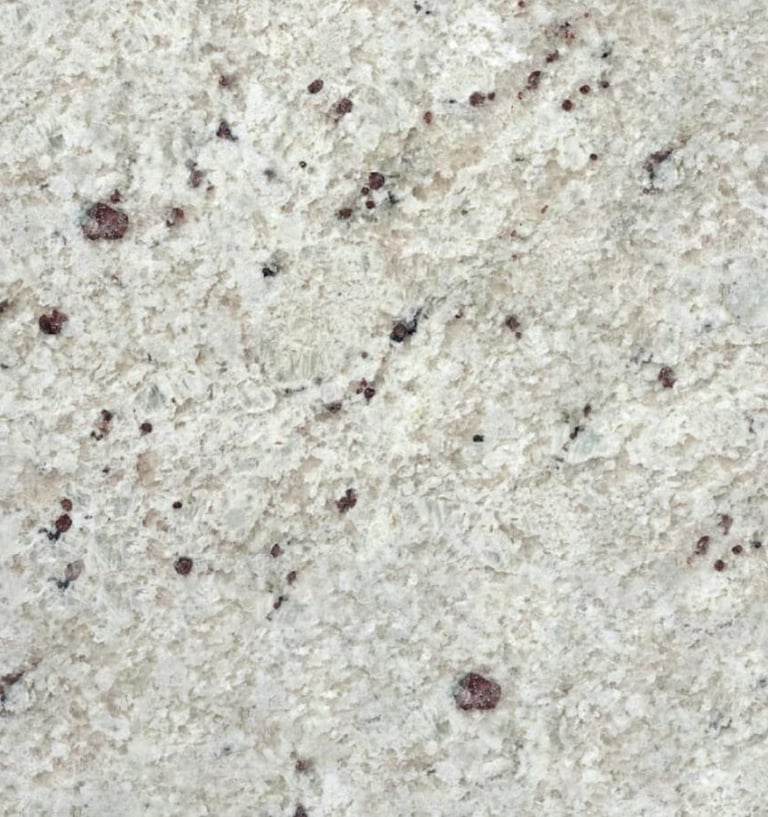 A light granite with a white to off-white base accented by gray and burgundy flecks. Its understated elegance and fine grain offer a refined look suited to both kitchens and baths.