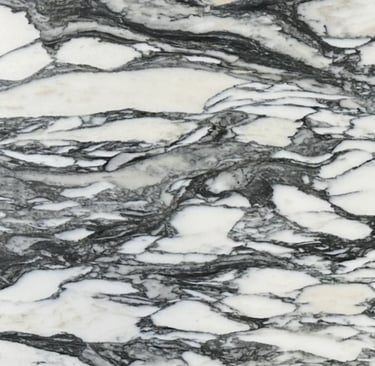 Arabescato marble displays a bright white background with intricate, looping gray veins that create a beautifully tangled “arabesque” pattern. It’s perfect where you want a lively, decorative stone.