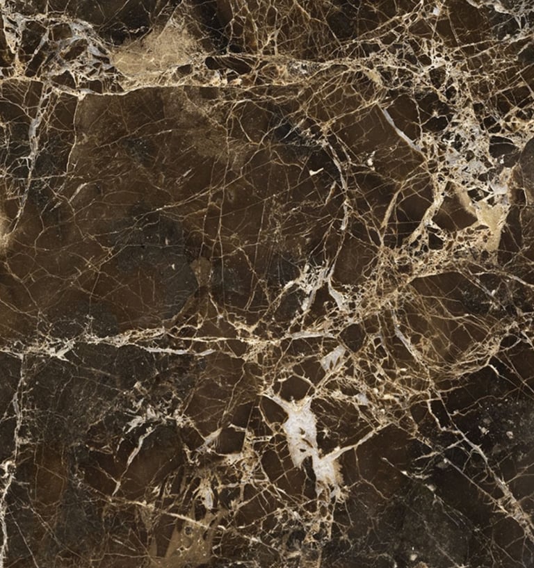 A rich, deep brown marble from Spain, Emperador Dark features fine, light-colored veins and occasional flecks of crystalline calcite. Its dark, earthy palette brings drama and sophistication to interiors.