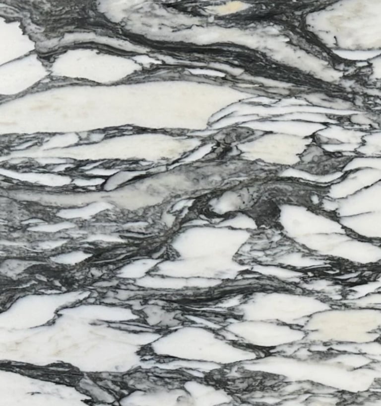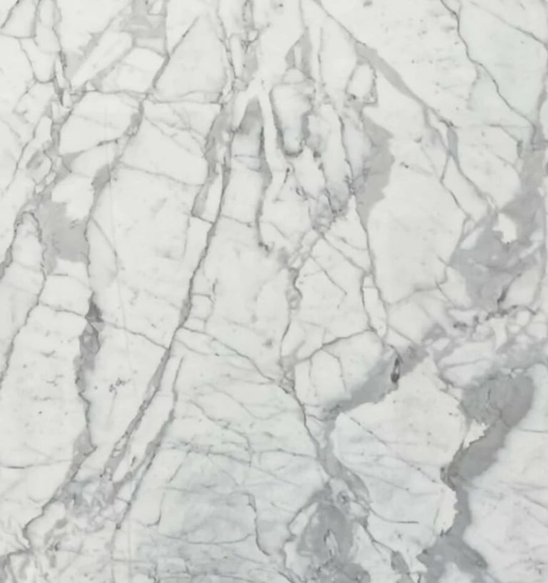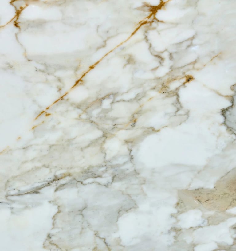 A luxurious Italian marble prized for its crisp white background and dramatic, thick veins in warm gold and gray tones. It has a bold, high-contrast look that’s ideal for statement countertops and feature walls.